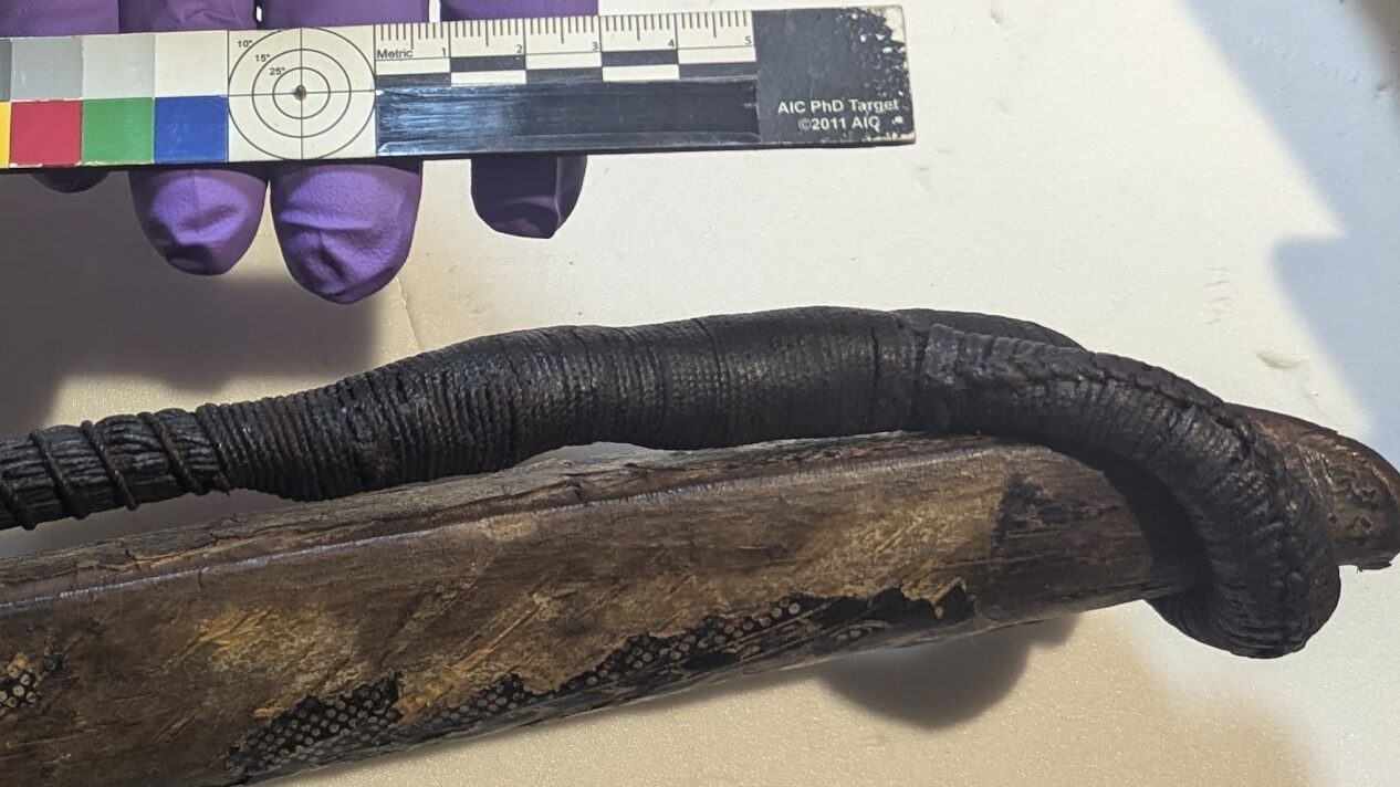 Detail view of the crossbow string. (Scale is cm and mm.)